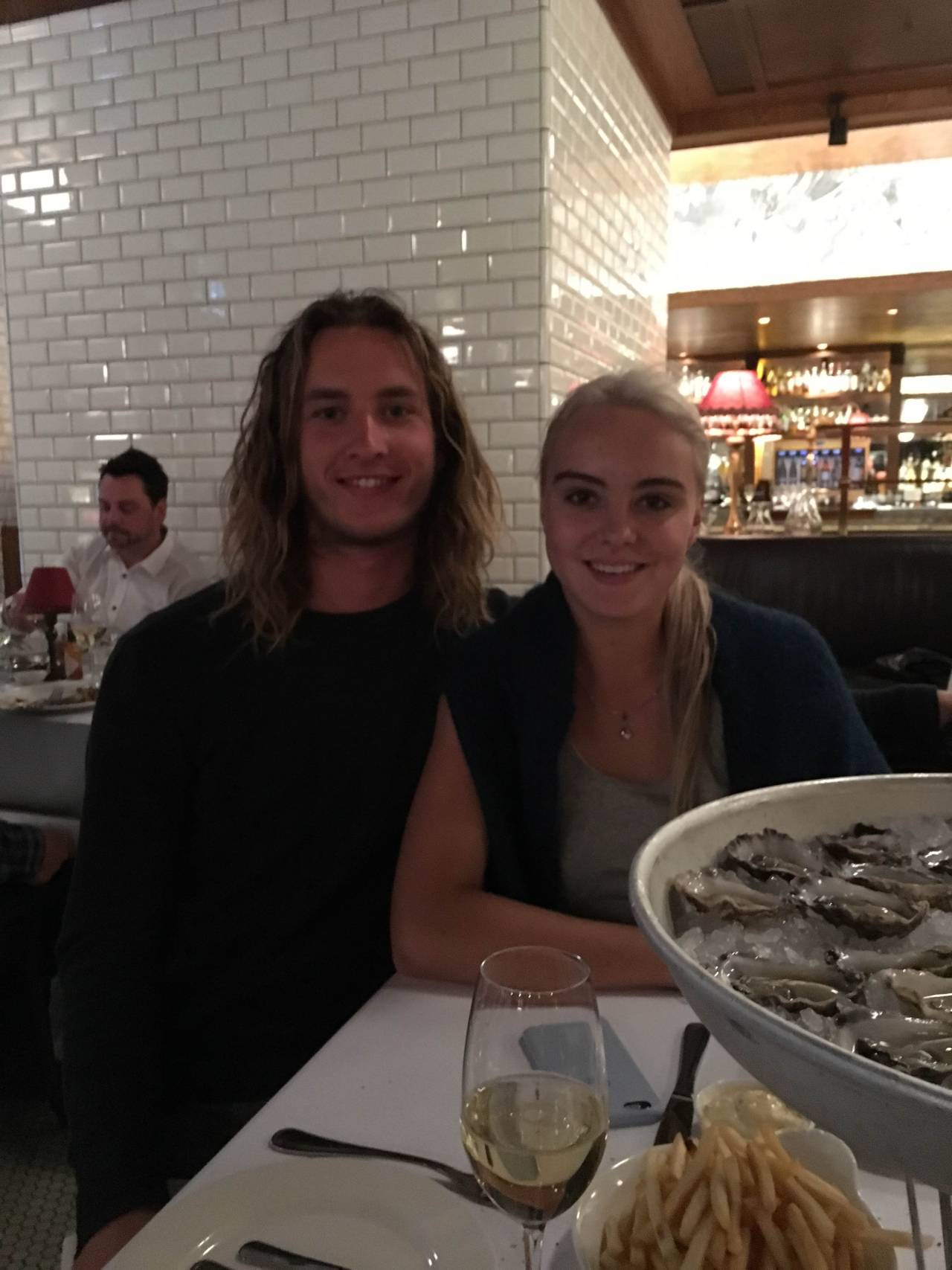 Duncan and Claudia celebrating Endi in style with his favorites, oysters and champagne w Liz