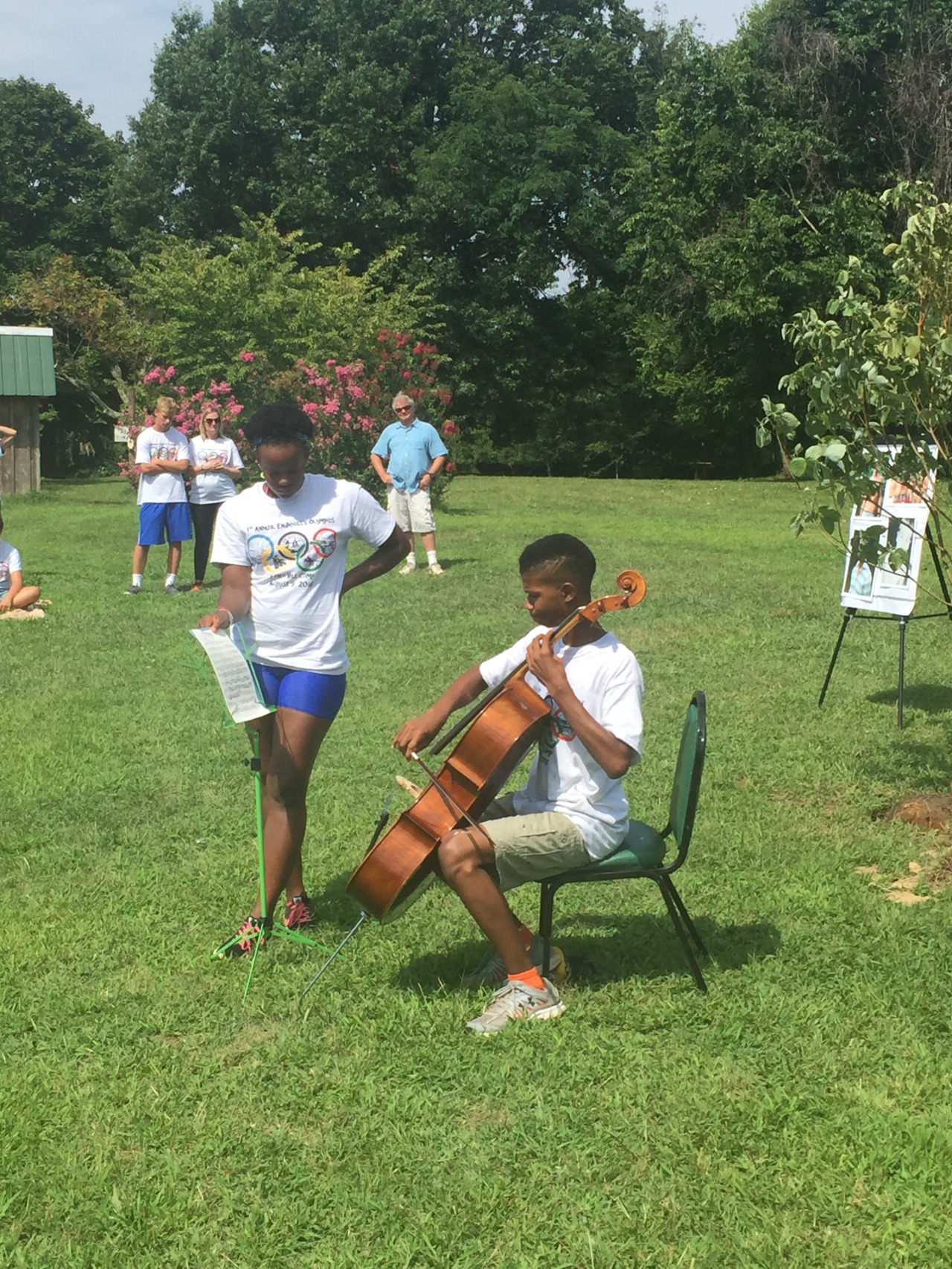 Before the tree-planting ceremony, a camper performs in Endi’s honor.